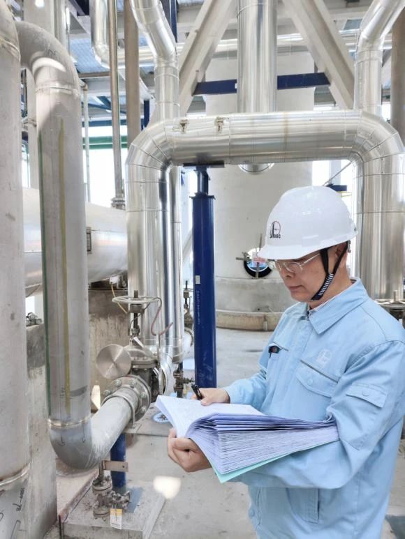 石科院科研人員在湖南石化5萬(wàn)噸/年環(huán)保型環(huán)氧氯丙烷工業(yè)示范裝置建設(shè)現(xiàn)場(chǎng)參加“三查四定”工作 攝影/孫乾輝