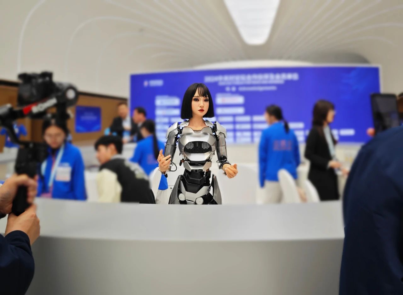 本屆中關(guān)村論壇最“吸睛”的元素之一,就是各種各樣的機(jī)器人。上圖是中關(guān)村國(guó)際創(chuàng)新中心咨詢臺(tái)拍攝仿生人形機(jī)器人,吸引了手持“長(zhǎng)槍短炮”的媒體記者。