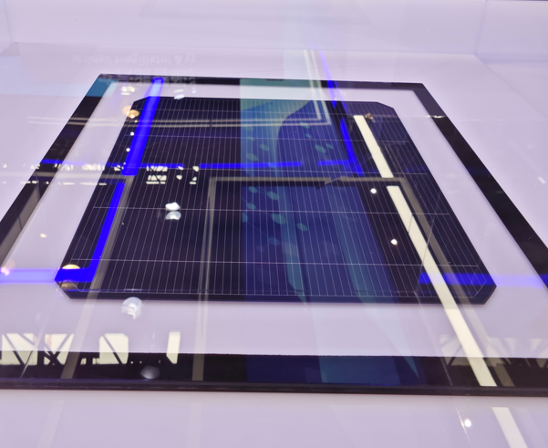 下圖中展示的是“高效層疊太陽(yáng)能電池組件”,系北京曜能科技有限公司自主研發(fā),經(jīng)中國(guó)計(jì)量科學(xué)研究院認(rèn)證,單個(gè)組件轉(zhuǎn)換效率達(dá)到25.45%。這一成果標(biāo)志著團(tuán)隊(duì)初步掌握工業(yè)級(jí)鈣鈦礦/晶硅疊層電池制備和封裝的工藝解決方案,驗(yàn)證了層疊電池產(chǎn)業(yè)化技術(shù)路線。