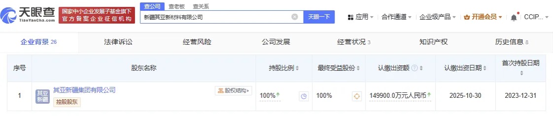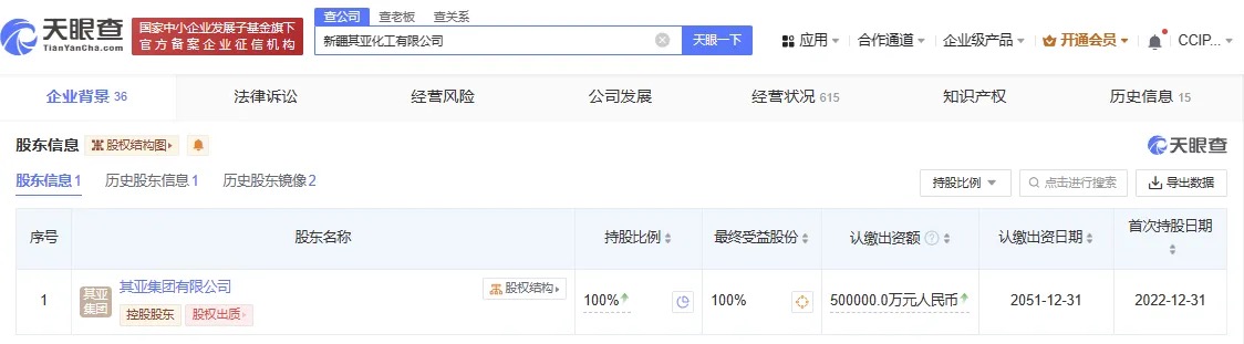 通過天眼查獲悉,新疆其亞新材料有限公司系其亞新疆集團的全資子公司,負責600萬噸/年煤基甲醇項目的建設(shè)實施。這也是目前公開報道建設(shè)實施的國內(nèi)最大規(guī)模煤基甲醇項目。