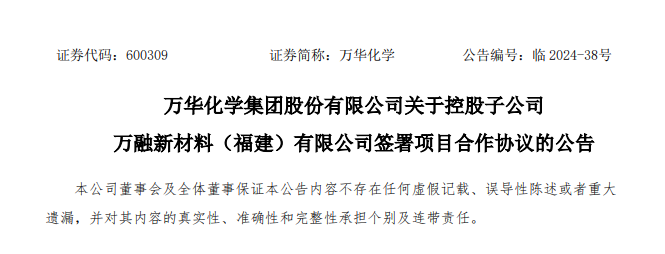 公告稱(chēng),《項(xiàng)目合作協(xié)議》目前僅為原則性框架性協(xié)議,后續(xù)合作事宜尚需進(jìn)一步明確。此次合作協(xié)議的簽署,是萬(wàn)華化學(xué)在高端新材料領(lǐng)域邁出的重要一步。