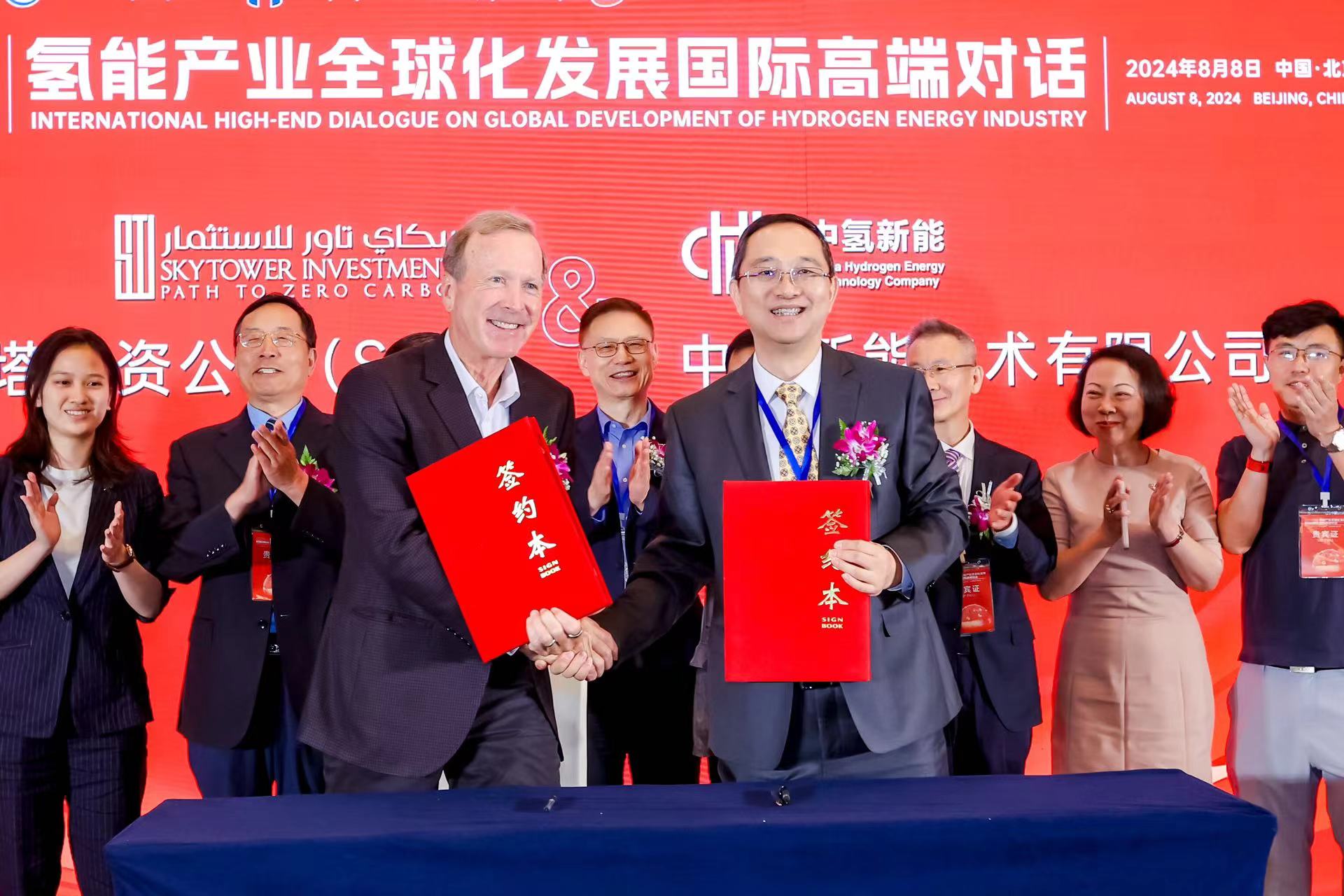 天空塔投資公司董事長尼爾·布什與中氫新能董事長周明強就氫能投資項目簽約