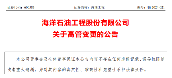 海洋石油工程財務總監(jiān)、董事會秘書及總法律顧問更新