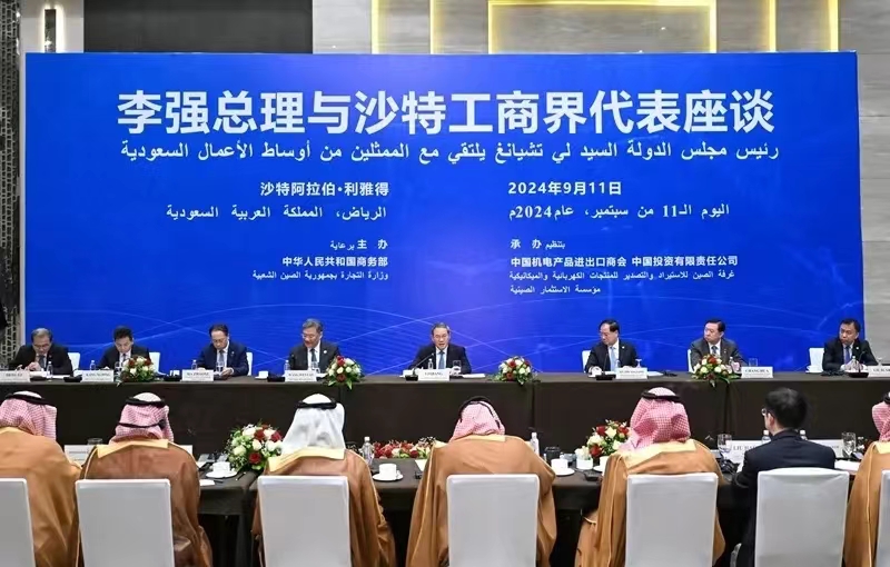 當?shù)貢r間9月11日上午,國務院總理李強在利雅得同沙特工商界代表座談交流。沙特投資大臣法利赫、商務大臣卡斯比以及沙特公共投資基金、沙特國家石油公司、沙特基礎工業(yè)公司、沙特國際電力和水務公司、阿吉蘭兄弟控股集團等企業(yè)負責人和中國-海合會共同投資聯(lián)合會代表出席。