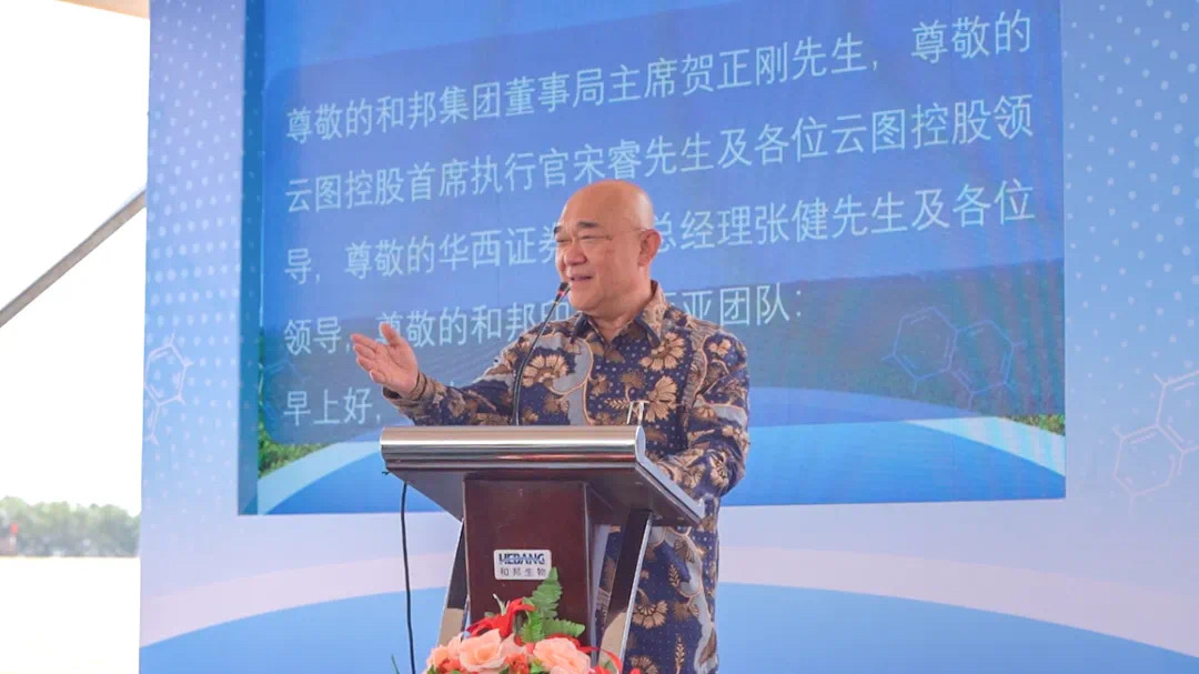 賀主席誠摯感謝了翁先生、班邦先生、伊斯坎達爾先生在政策指導、實地調研、項目落地中的大力支持。賀主席在致辭中談到,印尼和邦生物是和邦與吉配經濟特區(qū)跨國合作的標志性項目。作為中國西南地區(qū)歷史悠久的制造企業(yè),和邦自1993年成立以來,30年堅守實業(yè)、不斷革新。經過多年發(fā)展,我們建成了中國一流的化工生產和管理體系,在化學、農業(yè)產品領域擁有質量和成本的優(yōu)勢。今年,和邦帶著實業(yè)創(chuàng)新、共創(chuàng)未來的愿景,繼續(xù)推進全球化發(fā)展戰(zhàn)略,計劃在吉配經濟特區(qū)投資8億美金,設立產線新增產能。得益于中印尼兩國友好的關系、得益于“一帶一路”倡議和經濟全球化進程,年產30萬噸草甘膦項目能夠順利推進。我們希望此項目能增加和邦的國際市場影響力,能造福印尼當?shù)匕傩?,推動我們與吉配經濟特區(qū)的合作不斷發(fā)展,成為中印尼互利務實合作的又一案例。