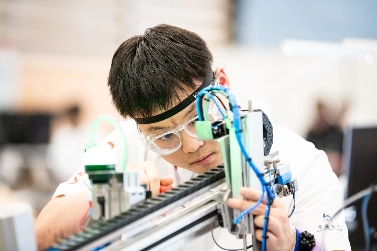 中秋月圓之時(shí),從法國里昂傳來喜訊。在剛剛結(jié)束的第47屆世界技能大賽上,中國代表團(tuán)共奪得36枚金牌,9枚銀牌、4枚銅牌和8個(gè)優(yōu)勝獎,位居金牌榜、獎牌榜和團(tuán)體總分首位。技師學(xué)院承接的4個(gè)世賽項(xiàng)目全部獲獎!其中,技師學(xué)院教師潘朝陽、羅自立出戰(zhàn)機(jī)電一體化項(xiàng)目斬獲金牌,這是技師學(xué)院自己培養(yǎng)的選手首次在世界技能大賽上實(shí)現(xiàn)金牌零的突破。