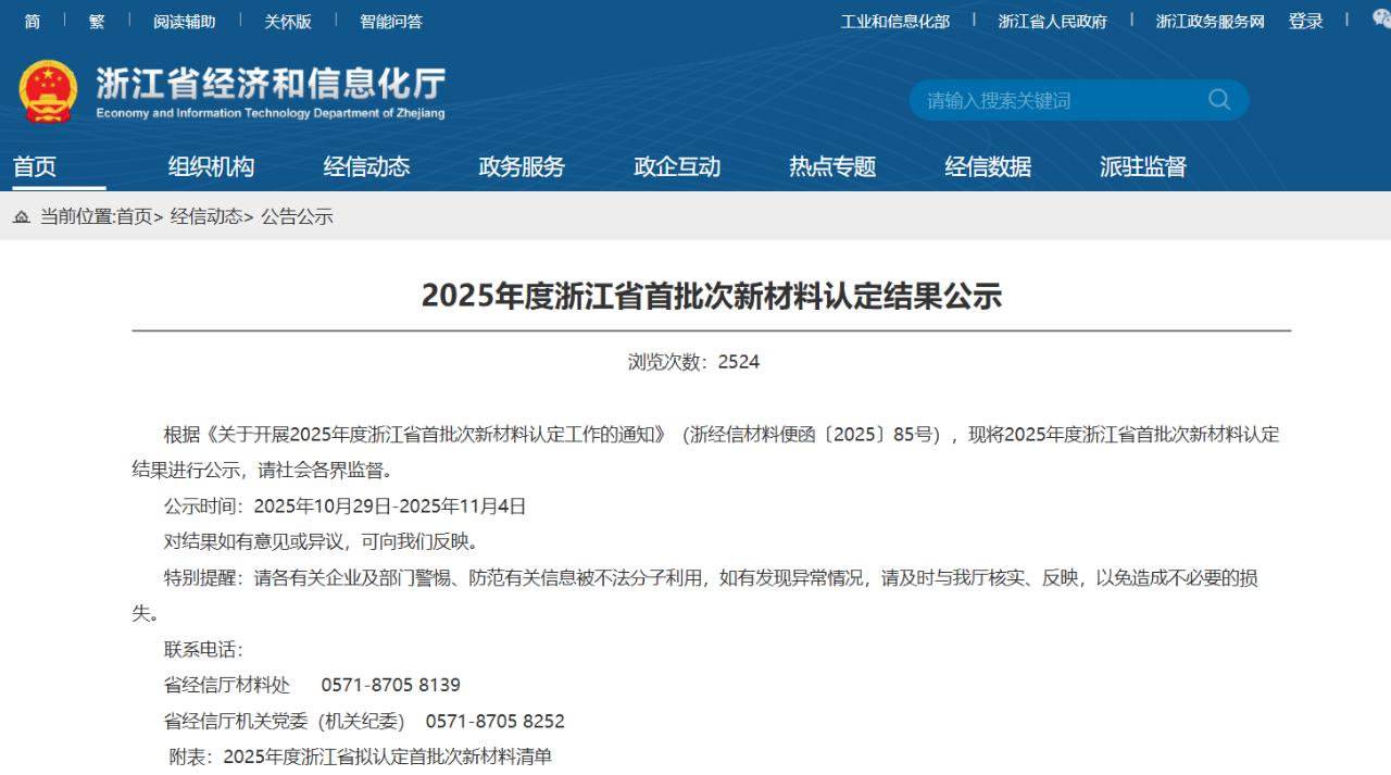 浙江經(jīng)信廳公示本年度首批新材料認(rèn)定結(jié)果