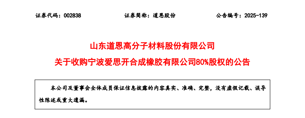 5.16億并購落子!道恩股份收購橡膠企業(yè)完善產(chǎn)業(yè)鏈布局
