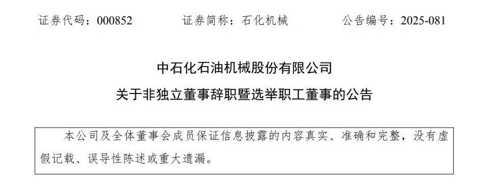 中石化石油機(jī)械股份有限公司重要人事變動(dòng)