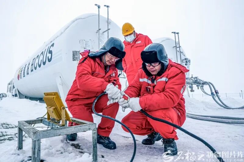 12月20日,新疆油田開發(fā)公司注碳工在吉慶油田作業(yè)區(qū)吉172片區(qū)注碳現(xiàn)場鏈接設(shè)備。