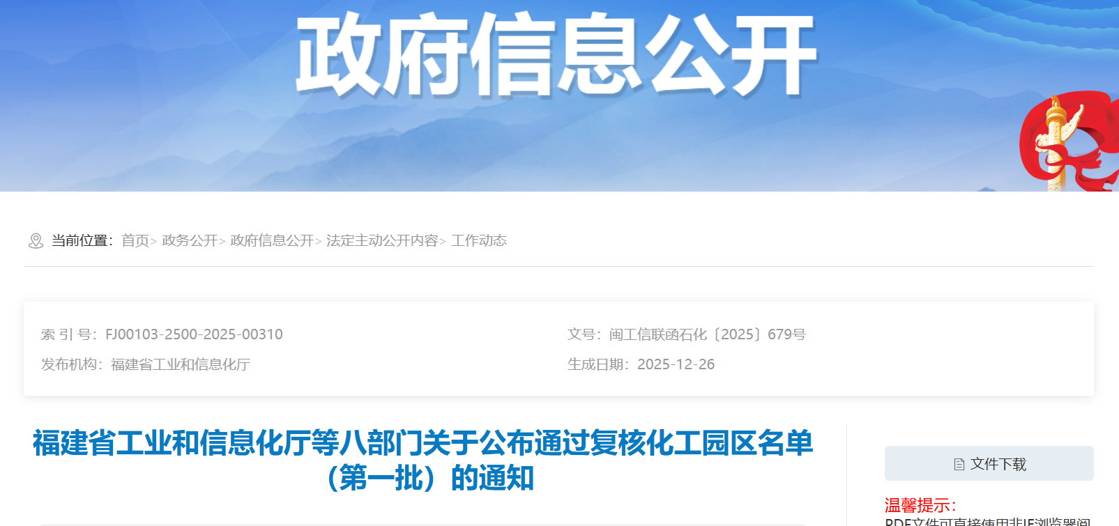 近日,福建省工業(yè)和信息化廳、發(fā)展和改革委員會等八部門聯(lián)合發(fā)布通知,正式公布全省第一批通過認定復(fù)核的化工園區(qū)名單,福州江陰港城經(jīng)濟區(qū)化工新材料專區(qū)等18個園區(qū)入圍。此次復(fù)核旨在落實國家及福建省化工園區(qū)規(guī)范管理要求,進一步提升園區(qū)安全環(huán)保水平和綠色發(fā)展能力。