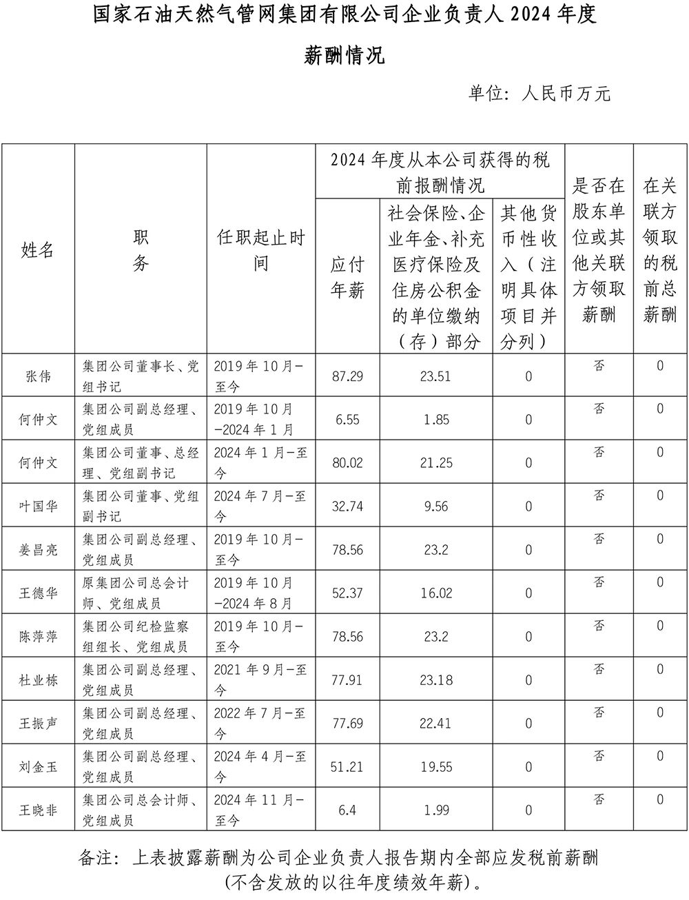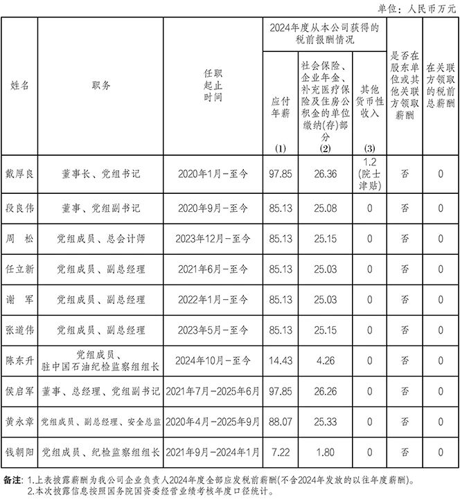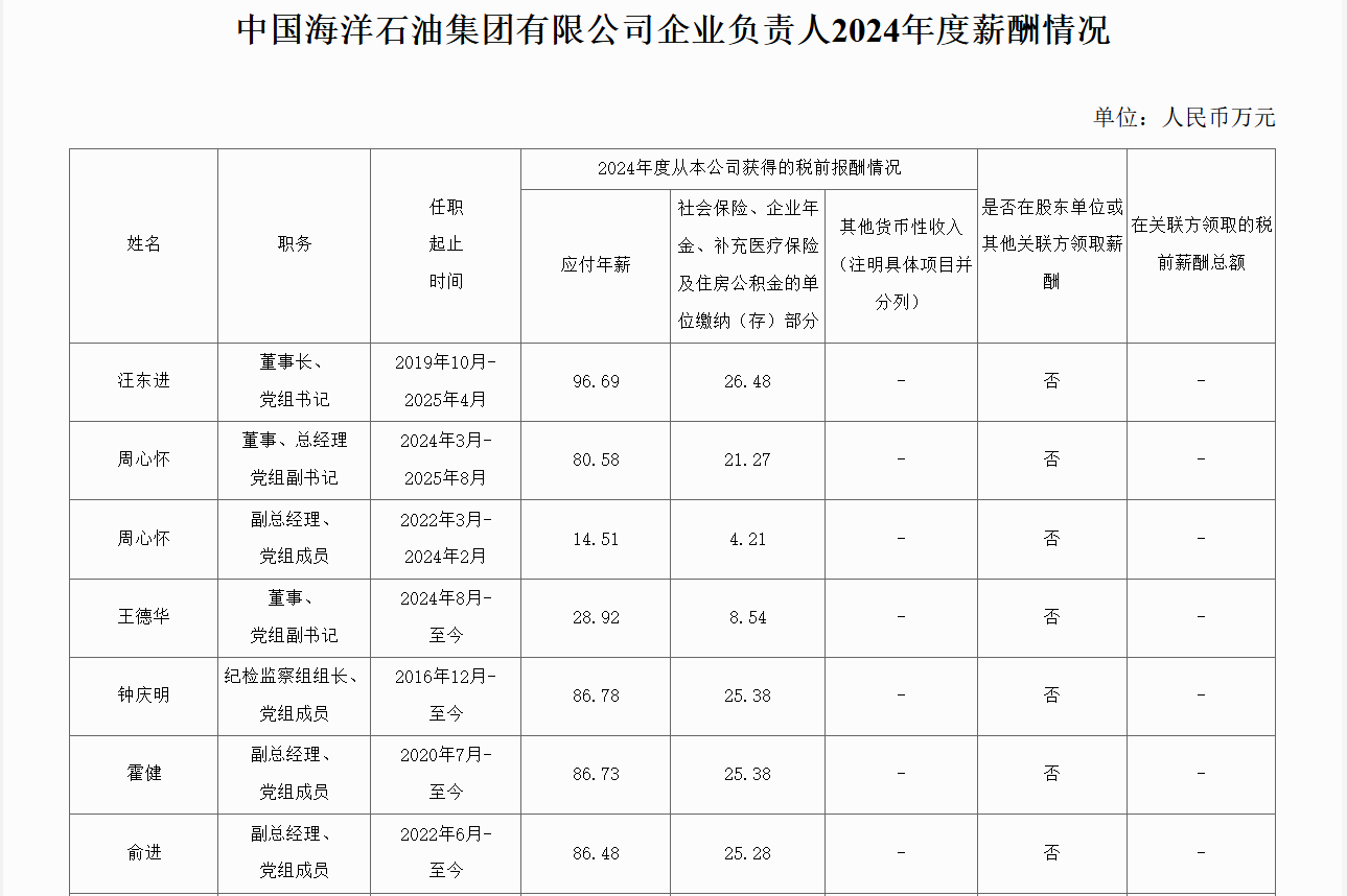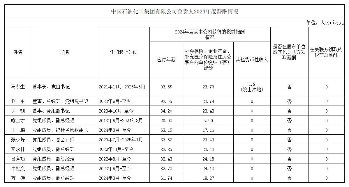 1月14日,國務(wù)院國資委網(wǎng)站通過提供各中央企業(yè)薪酬信息披露網(wǎng)頁鏈接的方式,披露了所監(jiān)管的80多家央企負責(zé)人2024年度薪酬信息。這是國資央企持續(xù)抓好重點領(lǐng)域信息公開、回應(yīng)公眾關(guān)心關(guān)切的重要舉措?,F(xiàn)匯總中國石油、中國石化、中國海油、國家管網(wǎng)、國家能源、中國化學(xué)、中國中化的相關(guān)信息如下。