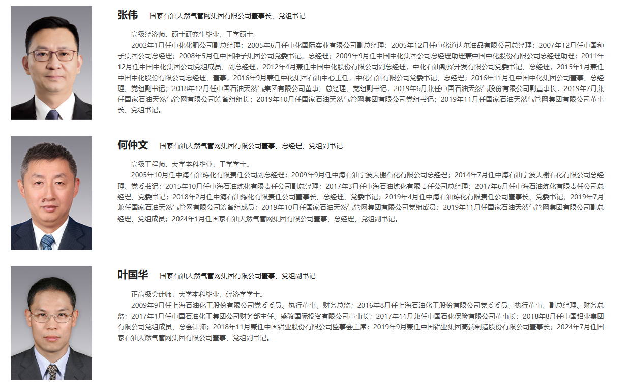 國(guó)家管網(wǎng)集團(tuán)領(lǐng)導(dǎo)匯總