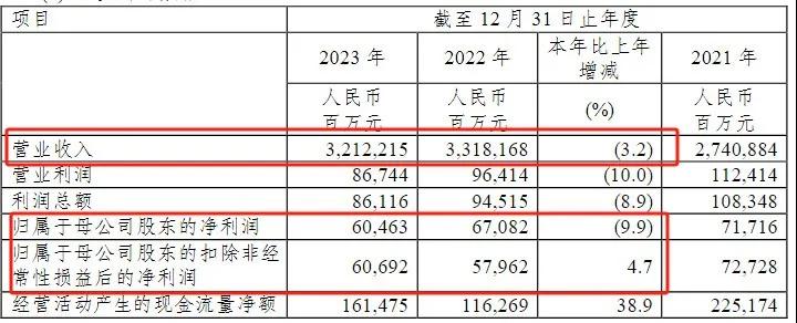 中國石化3月24日晚交出2023年年報。財報顯示,公司全年實現(xiàn)營業(yè)收入3.21萬億元,同比小幅下滑3.2%,但扣除非經(jīng)常性損益后歸母凈利潤為607億元,同比增長4.7%。