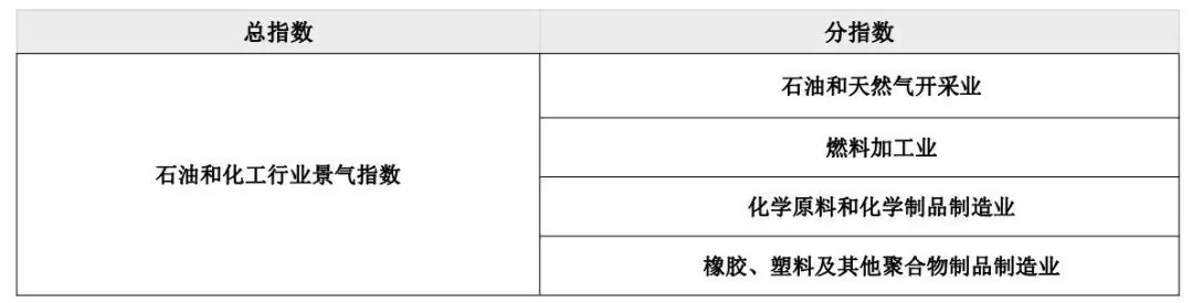石油和化工行業(yè)景氣指數(shù)由中國石油和化學(xué)工業(yè)聯(lián)合會(huì)與山東卓創(chuàng)資訊股份有限公司聯(lián)合編制,是石油化工行業(yè)的微觀景氣循環(huán)監(jiān)控指標(biāo),包括“石油和天然氣開采業(yè)景氣指數(shù)”“燃料加工業(yè)景氣指數(shù)”“化學(xué)原料和化學(xué)制品制造業(yè)景氣指數(shù)”“橡膠、塑料及其他聚合物制品制造業(yè)景氣指數(shù)”4個(gè)分指數(shù)。石油和化工行業(yè)景氣指數(shù)的景氣指標(biāo)選擇以度量行業(yè)的潛在產(chǎn)出和經(jīng)濟(jì)效益為標(biāo)準(zhǔn),包括生產(chǎn)類微觀數(shù)據(jù)和行業(yè)效益類數(shù)據(jù),其中生產(chǎn)類微觀數(shù)據(jù)包括產(chǎn)能利用率、產(chǎn)品盈利能力、產(chǎn)成品庫存水平?;A(chǔ)數(shù)據(jù)來源于與千余家企業(yè)建立的定期調(diào)研評(píng)估結(jié)果。