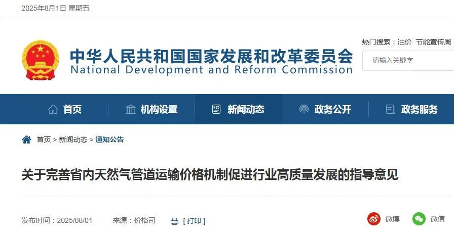 國(guó)家發(fā)改委、國(guó)家能源局發(fā)布《關(guān)于完善省內(nèi)天然氣管道運(yùn)輸價(jià)格機(jī)制促進(jìn)行業(yè)高質(zhì)量發(fā)展的指導(dǎo)意見》