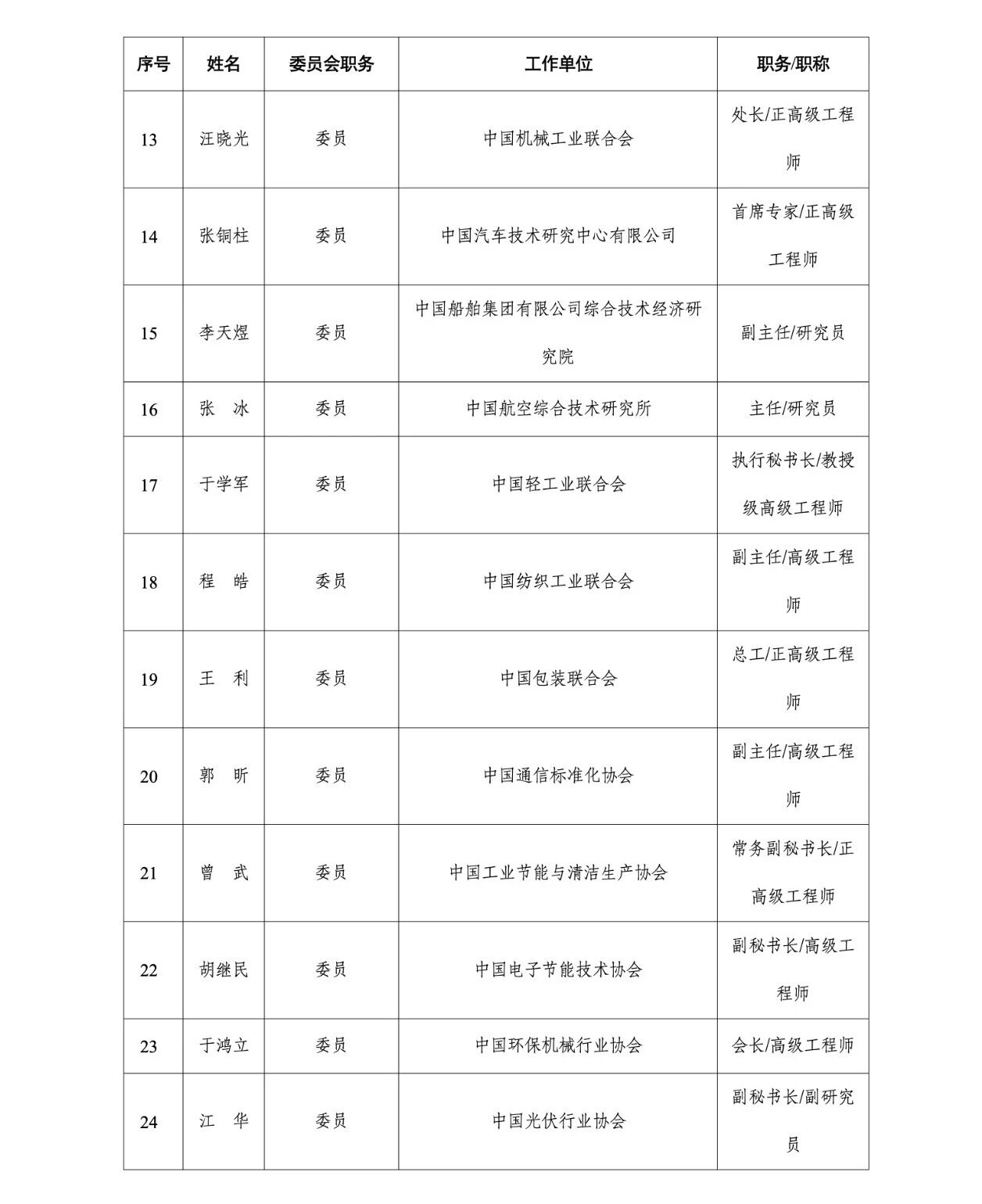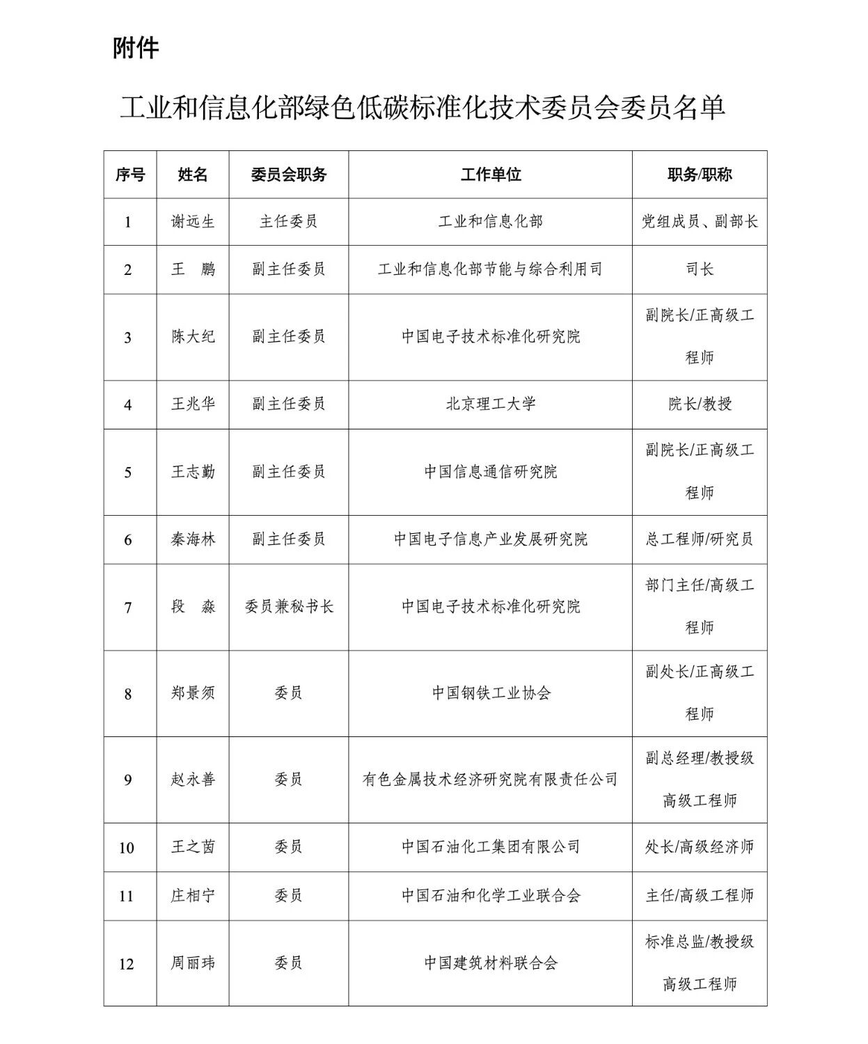 工業(yè)和信息化部綠色低碳標(biāo)準(zhǔn)化技術(shù)委員會委員名單公示