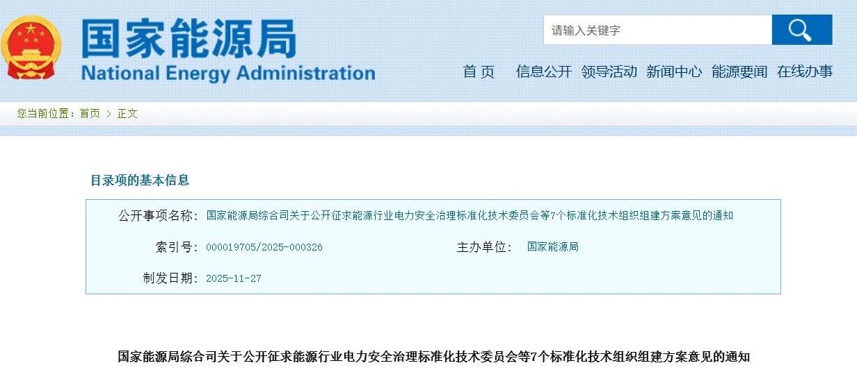 根據(jù)《能源標(biāo)準(zhǔn)化管理辦法及實(shí)施細(xì)則》《國(guó)家能源局關(guān)于進(jìn)一步完善能源行業(yè)標(biāo)準(zhǔn)化技術(shù)委員會(huì)管理的通知》,我局?jǐn)M批準(zhǔn)組建能源行業(yè)電力安全治理標(biāo)準(zhǔn)化技術(shù)委員會(huì)、能源行業(yè)電力溫室氣體排放管理標(biāo)準(zhǔn)化技術(shù)委員會(huì)、能源行業(yè)二氧化碳捕集運(yùn)輸利用與封存標(biāo)準(zhǔn)化技術(shù)委員會(huì)、能源行業(yè)氫能基礎(chǔ)與通用標(biāo)準(zhǔn)化技術(shù)委員會(huì)、能源行業(yè)氫能制取標(biāo)準(zhǔn)化技術(shù)委員會(huì)、能源行業(yè)氫能儲(chǔ)存與運(yùn)輸標(biāo)準(zhǔn)化技術(shù)委員會(huì)、能源行業(yè)氫能應(yīng)用標(biāo)準(zhǔn)化技術(shù)委員會(huì)。現(xiàn)就以上標(biāo)準(zhǔn)化技術(shù)委員會(huì)的組建方案公開征求意見,征求意見截止時(shí)間為2025年12月28日,請(qǐng)以書面形式將意見通過電子郵件反饋至nb_standard@126.com。