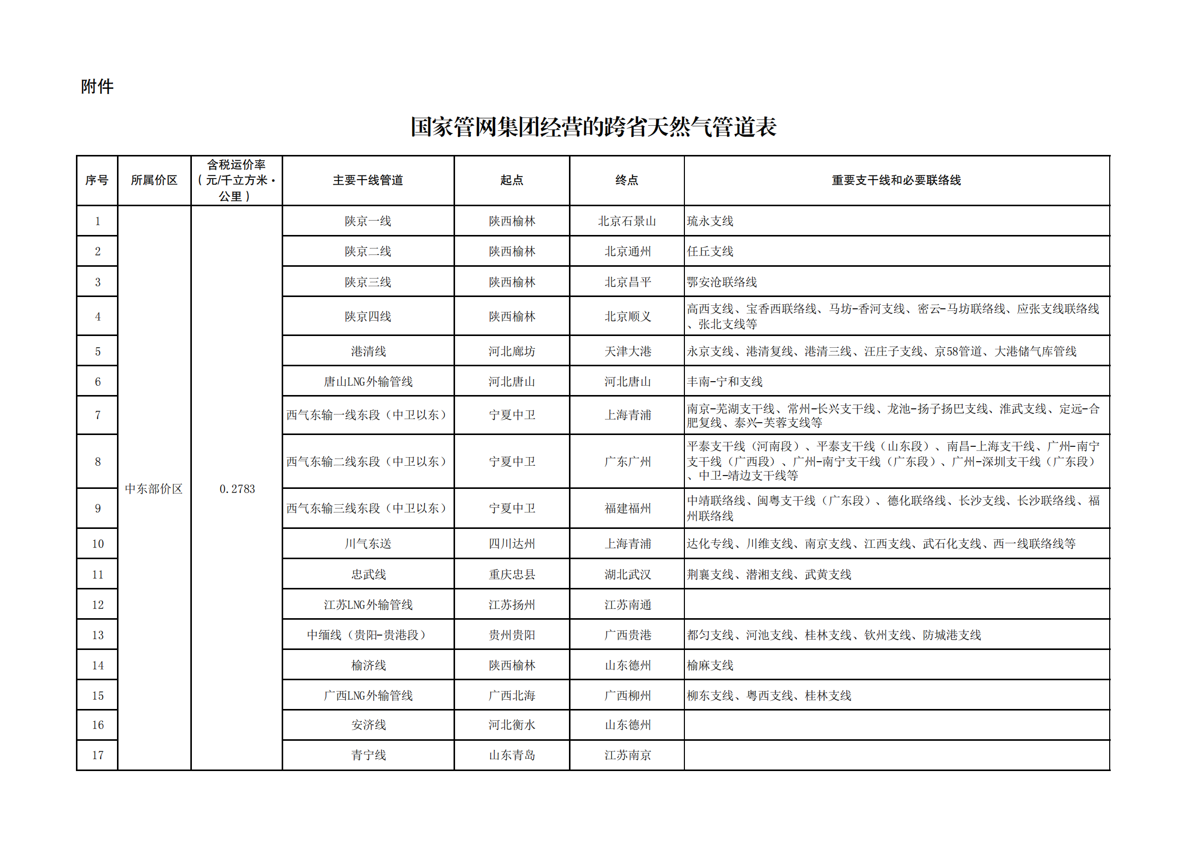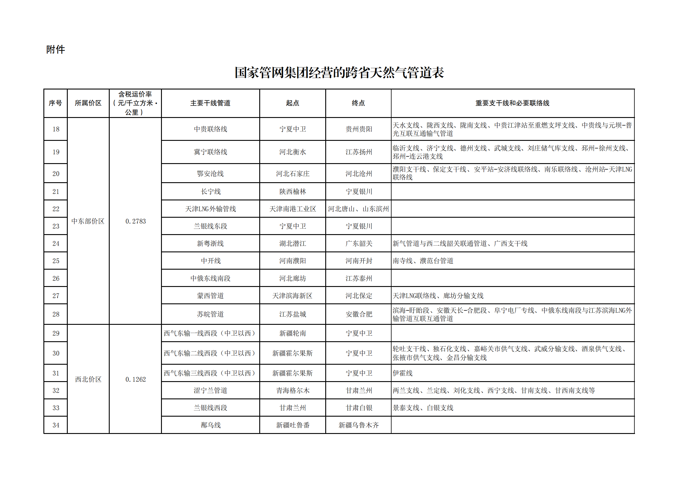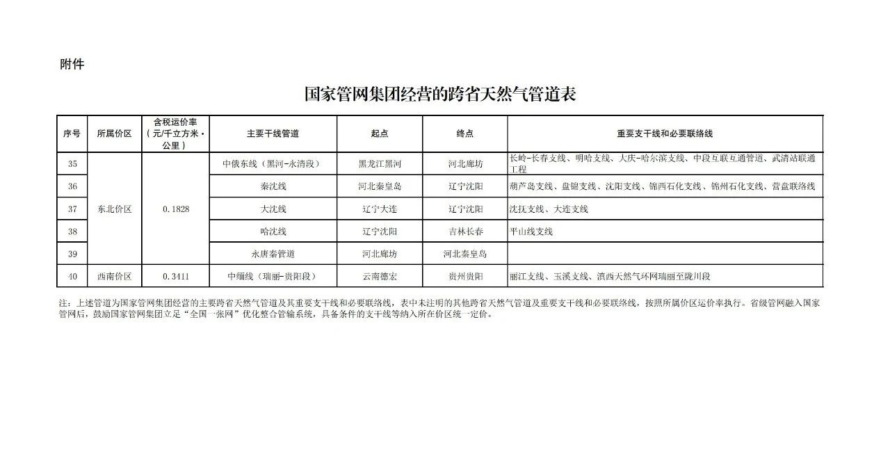 附件:國家管網(wǎng)集團經(jīng)營的跨省天然氣管道表