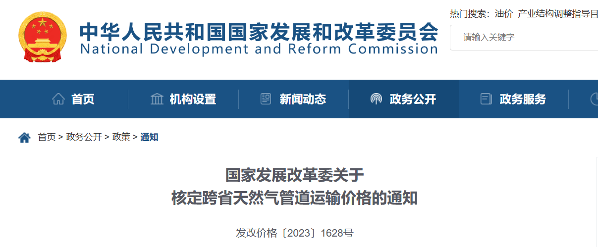 國家發(fā)展改革委關(guān)于核定跨省天然氣管道運輸價格的通知