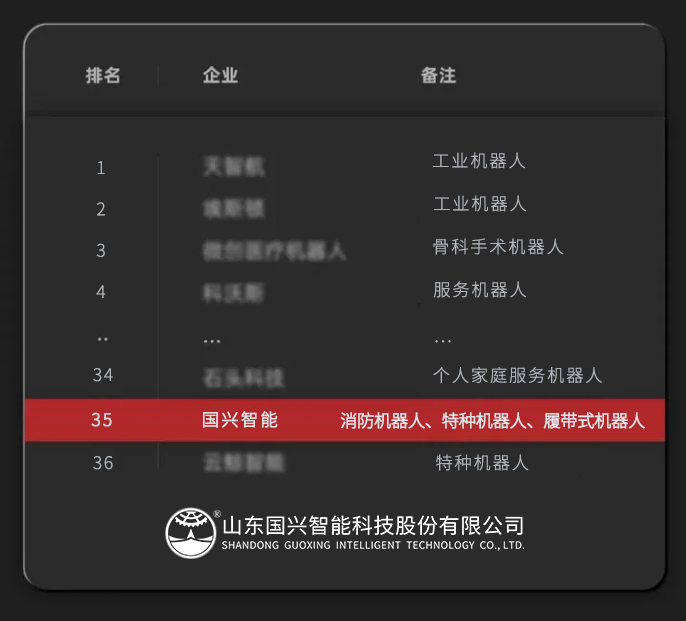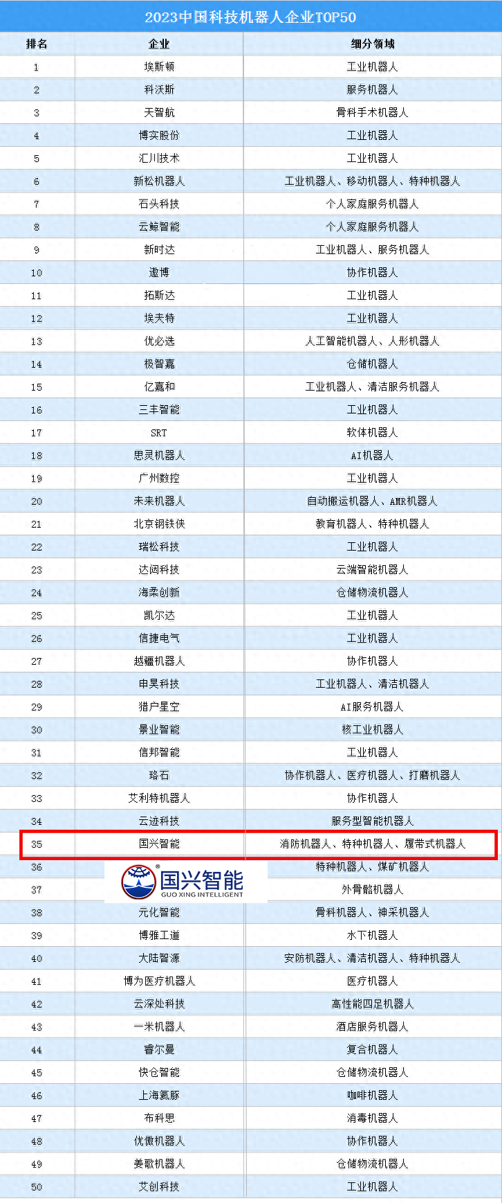 在本次公布的榜單中,國興智能作為國內(nèi)“特種機(jī)器人”產(chǎn)銷的頭部品牌,成功登榜。