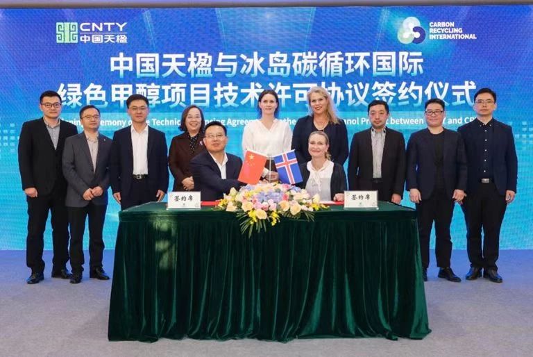 2024年10月29日,冰島碳循環(huán)國(guó)際公司(以下簡(jiǎn)稱CRI)與中國(guó)天楹集團(tuán)簽署技術(shù)許可協(xié)議,中國(guó)天楹集團(tuán)將運(yùn)用CRI的專利技術(shù),在吉林遼源建設(shè)中國(guó)首個(gè)大規(guī)模應(yīng)用CRI二氧化碳制綠色甲醇的項(xiàng)目,項(xiàng)目首期工程綠色甲醇年產(chǎn)能將達(dá)17萬(wàn)噸。