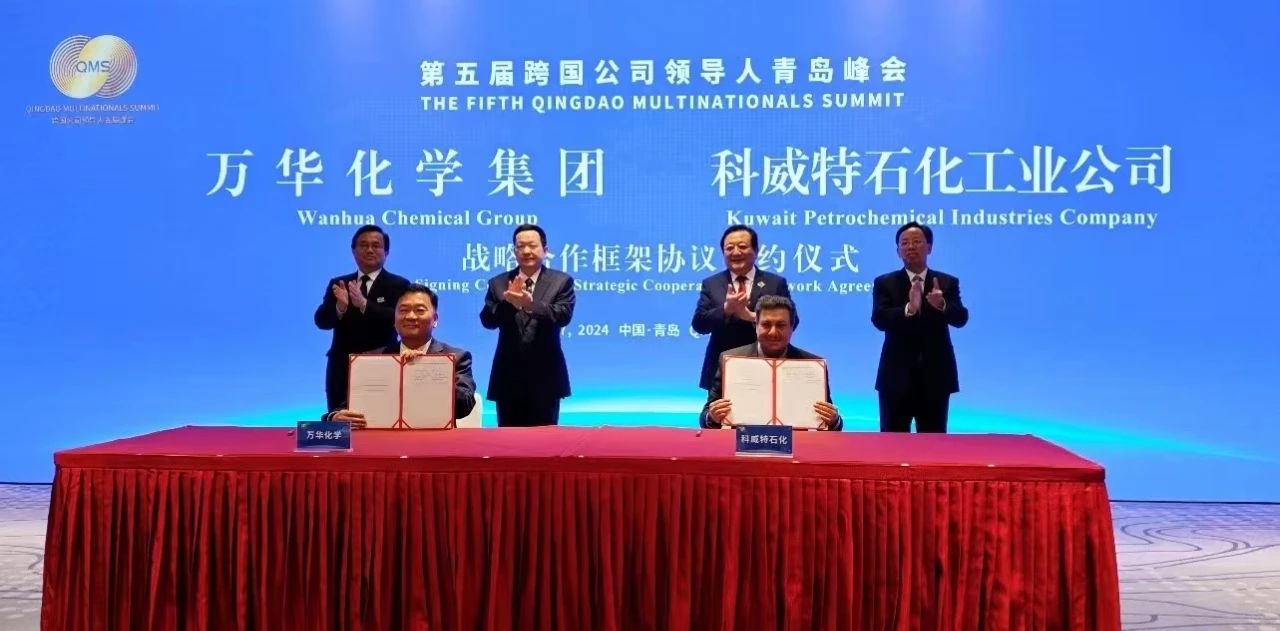 2024年8月27日,青島舉辦的跨國(guó)公司領(lǐng)導(dǎo)人峰會(huì)上,萬(wàn)華化學(xué)集團(tuán)與科威特石化工業(yè)公司共同簽署了《戰(zhàn)略合作框架協(xié)議》。此次合作是在煙臺(tái)市市委副書記、市長(zhǎng)鄭德雁的見(jiàn)證下達(dá)成的,對(duì)煙臺(tái)乃至山東的石化產(chǎn)業(yè)都是一次重要的賦能升級(jí)。