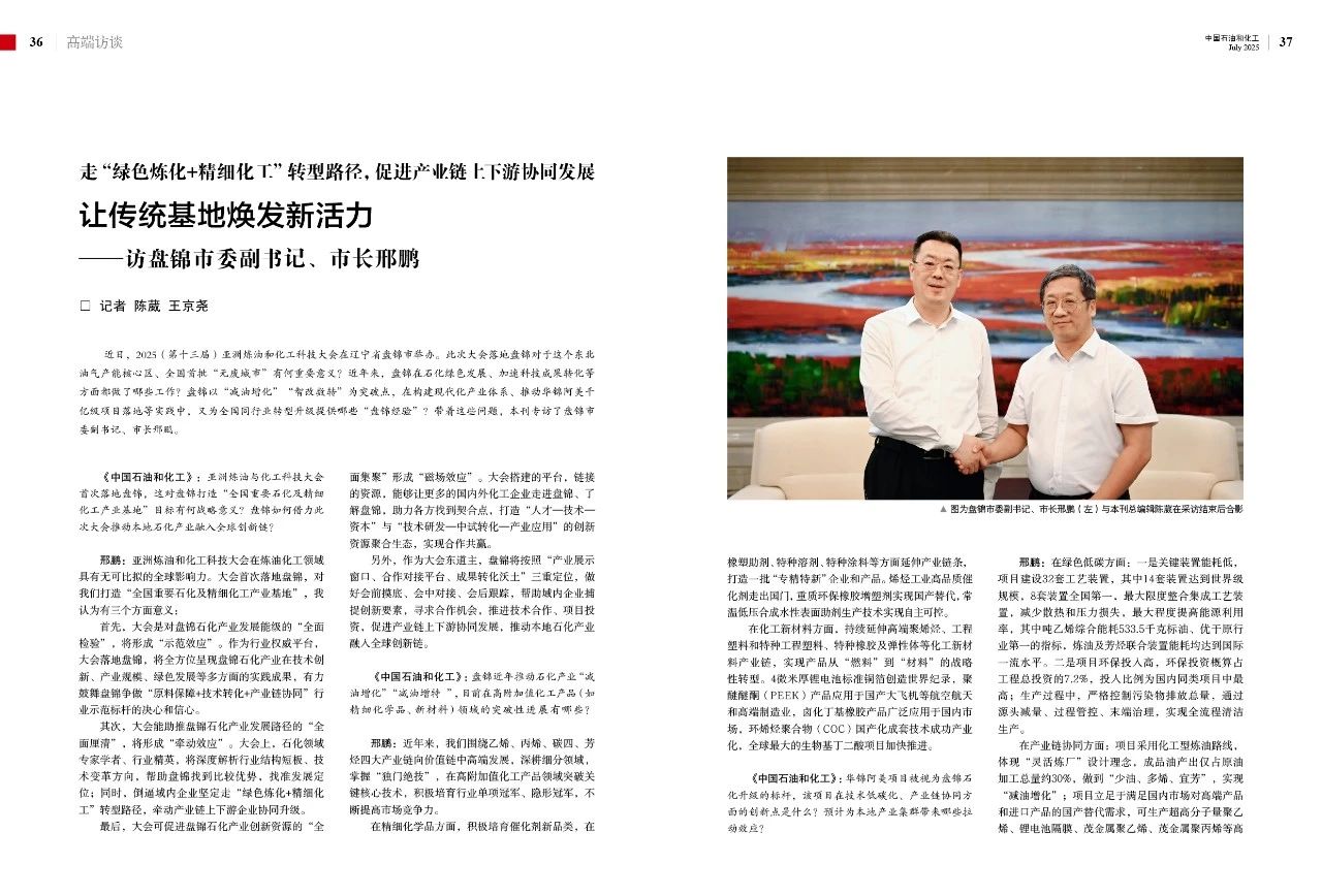 《中國石油和化工》:作為全國首批“無廢城市”,盤錦在綠色石化發(fā)展方面有哪些可推廣的經(jīng)驗?