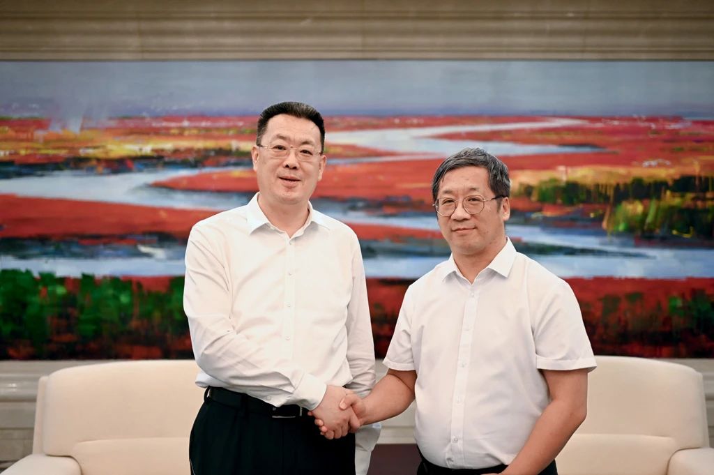 圖為盤錦市委副書記、市長邢鵬(左)與本刊總編輯陳葳在采訪結(jié)束后合影