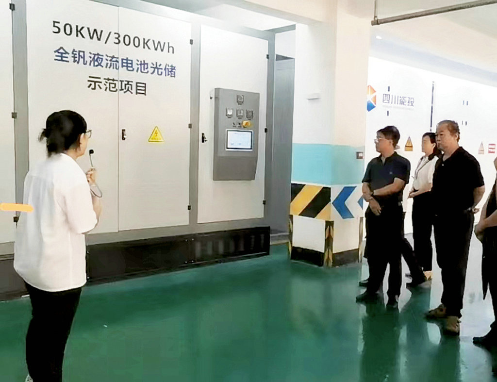 “我們現(xiàn)在看到的是于2022年9月建成的1套50kW/300kWh光伏發(fā)電一體化儲能系統(tǒng)和1套50kW/300kWh調(diào)峰(削峰填谷)儲能系統(tǒng),正持續(xù)開展設(shè)備調(diào)試和優(yōu)化,著力提高能量效率和實現(xiàn)系統(tǒng)長周期穩(wěn)定運行。”四川化工集團有關(guān)負責人向調(diào)研組介紹道。