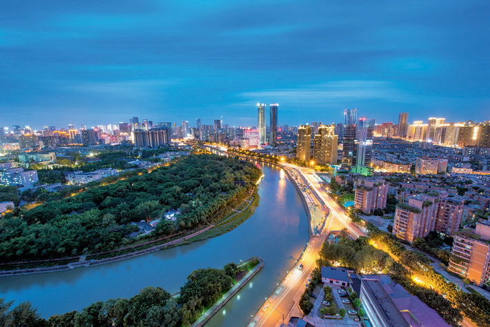 7月的成都正是旅游旺季,雙流國際機場一派繁忙景象,飛機一架接一架地起落。當調(diào)研組乘車前往市區(qū),夜色下的成都街頭華燈初上,繁華街道上車輛川流不息,五彩繽紛的霓虹燈下,人們在悠閑愜意地散步。