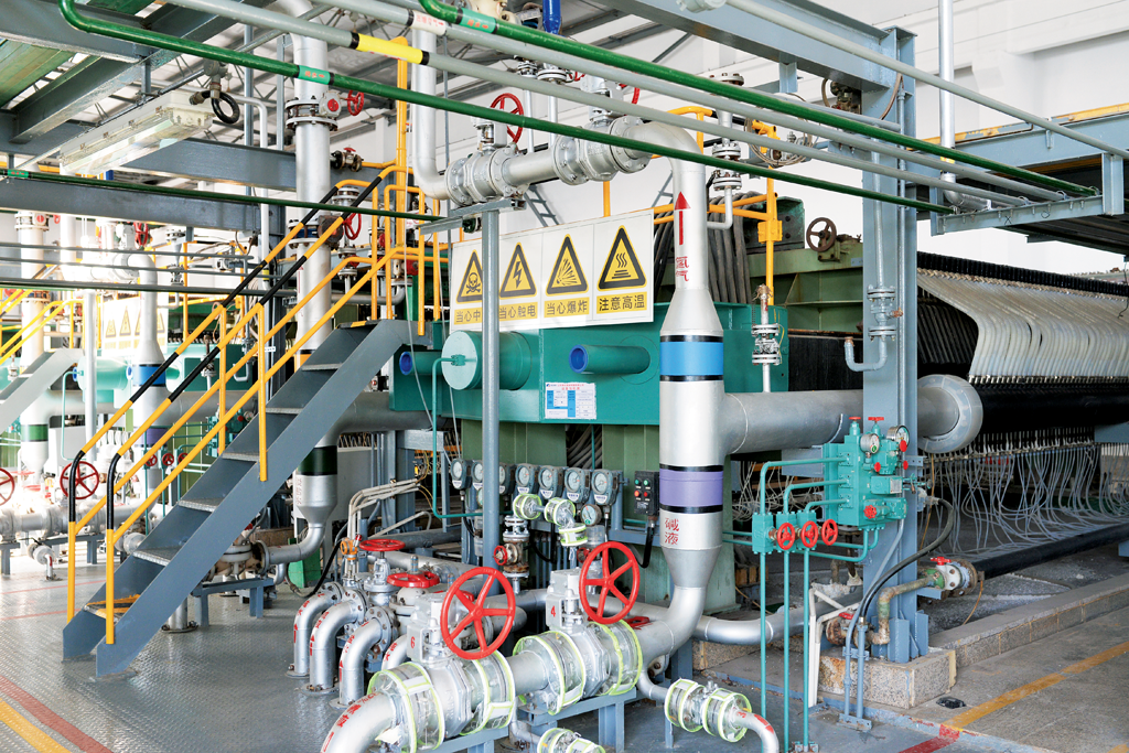 多舉措對余熱進行回收利用降低蒸汽單耗:利用氯化氫合成余熱對鹽水進行提溫;利用電解槽高溫濕氯氣余熱改造項目對濕氯氣熱量進行利用,降低一次鹽水加熱用蒸汽,年節(jié)約蒸汽7000噸;針對地下水停用后冬季水庫水溫過低,導(dǎo)致補充蒸汽量較大的情況,公司將脫硝系統(tǒng)余熱進行回收利用。該項目投用后蒸汽消耗大幅度降低,年節(jié)約蒸汽5000噸。