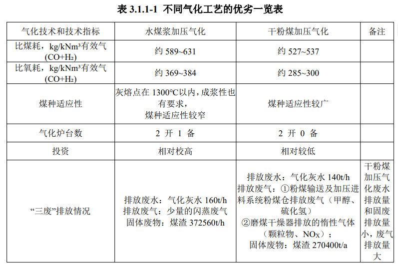 本次變更對(duì)氣化工藝進(jìn)行調(diào)整,氣化工藝由原來(lái)的水煤漿加壓氣化工藝變更為干粉煤加壓氣化工藝。