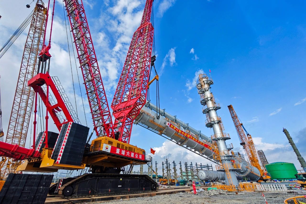 廣西石化百萬(wàn)噸乙烯項(xiàng)目超大型塔器一次吊裝成功