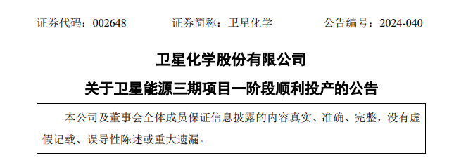 7月16日,衛(wèi)星化學(xué)發(fā)布公告:近日,衛(wèi)星化學(xué)股份有限公司收到子公司浙江衛(wèi)星能源有限公司通知,該公司新材料新能源一體化項(xiàng)目(以下簡稱“衛(wèi)星能源三期項(xiàng)目”)即年產(chǎn)80萬噸多碳醇項(xiàng)目一階段裝置經(jīng)投料試生產(chǎn)后已成功產(chǎn)出合格產(chǎn)品,標(biāo)志著衛(wèi)星能源三期項(xiàng)目一階段一次開車成功。截止本公告披露日,衛(wèi)星能源三期項(xiàng)目一階段裝置運(yùn)行穩(wěn)定。