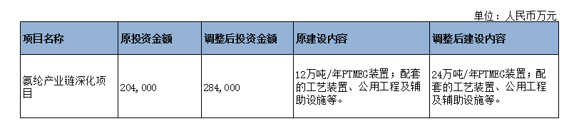 7月13日,華峰化學(xué)發(fā)布關(guān)于氨綸產(chǎn)業(yè)鏈深化項(xiàng)目調(diào)整的公告。公告顯示,公司擬對(duì)原“氨綸產(chǎn)業(yè)鏈深化項(xiàng)目”進(jìn)行調(diào)整,在原項(xiàng)目基礎(chǔ)上通過(guò)以公司自籌資金的方式追加投資8億元擴(kuò)建產(chǎn)能,主要調(diào)整如下: