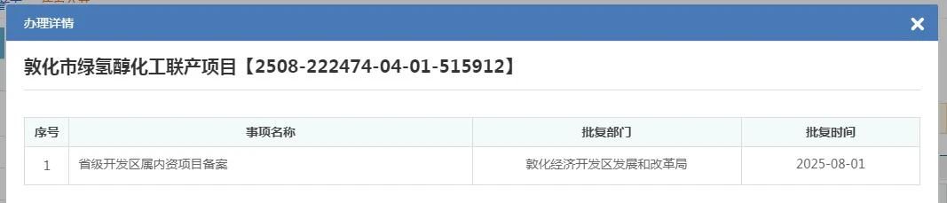 8月1日,吉林省敦化市綠氫醇化工聯(lián)產(chǎn)項(xiàng)目獲備案。