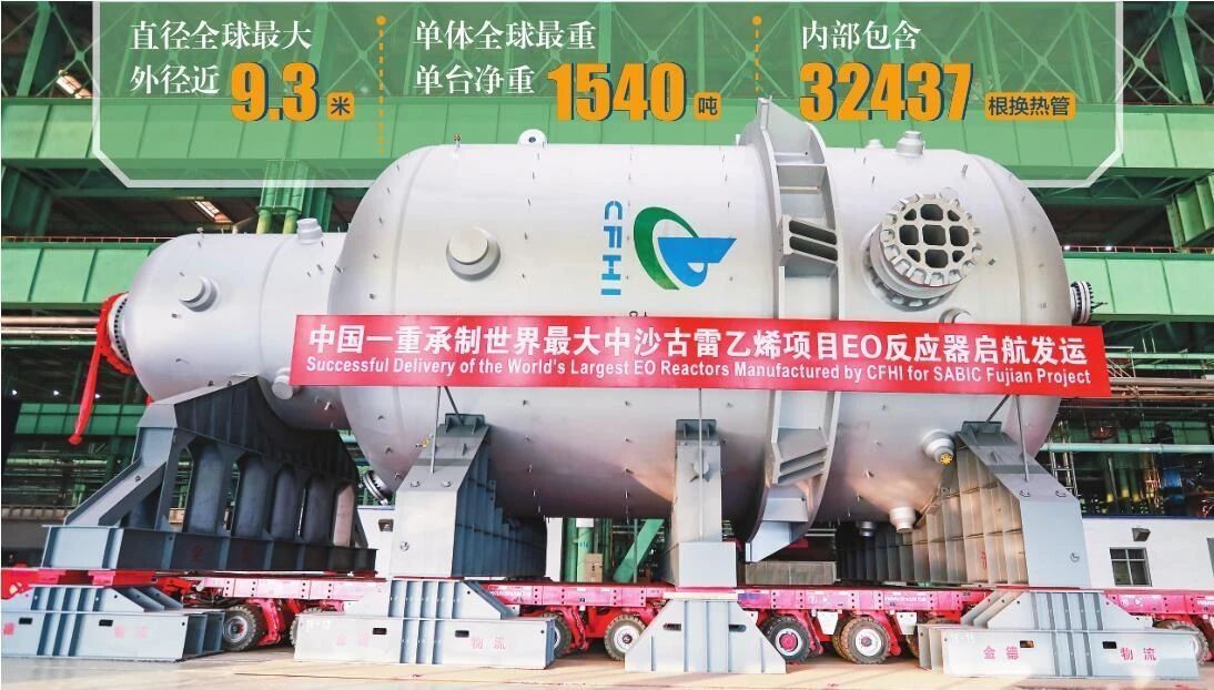 外徑近9.3米,單臺凈重達(dá)1540噸,內(nèi)部包含32437根換熱管……近日,由中國一重承制的中沙古雷乙烯項目EO/EG裝置EO反應(yīng)器,在一重集團(tuán)大連核電石化裝備制造基地正式啟航發(fā)運(yùn)。該裝備一舉刷新直徑最大、單體最重EO反應(yīng)器的世界制造紀(jì)錄,不僅彰顯出中國一重的技術(shù)創(chuàng)新能力與制造實(shí)力,更凸顯中國制造在國際重大合作項目中的核心價值。