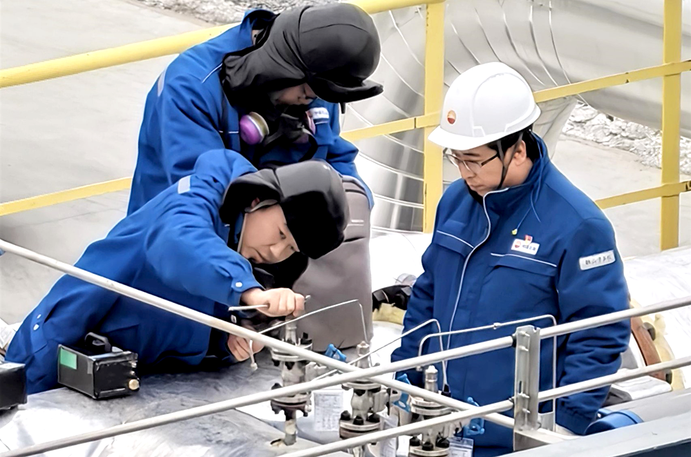 1月1日,B套單元正式啟動(dòng)裸冷作業(yè)——這是檢驗(yàn)設(shè)備低溫密封性、結(jié)構(gòu)強(qiáng)度及安裝精度的核心環(huán)節(jié),直接影響裝置后續(xù)能否穩(wěn)定運(yùn)行。當(dāng)時(shí)施工現(xiàn)場(chǎng)氣溫驟降,作業(yè)空間狹小,給裸冷作業(yè)帶來(lái)多重考驗(yàn)。“再仔細(xì)檢查一遍密封件,絕不能留任何隱患!”現(xiàn)場(chǎng)指揮員的喊聲穿透寒風(fēng),作業(yè)人員身著厚重防寒服,在狹窄空間內(nèi)精準(zhǔn)操作,緊盯設(shè)備各項(xiàng)參數(shù)。經(jīng)過(guò)24小時(shí)連續(xù)奮戰(zhàn),裸冷任務(wù)順利完成。團(tuán)隊(duì)馬不停蹄投入冷緊、復(fù)溫冷箱干燥等工作,以高效執(zhí)行力筑牢裝置安全運(yùn)行基礎(chǔ)。
