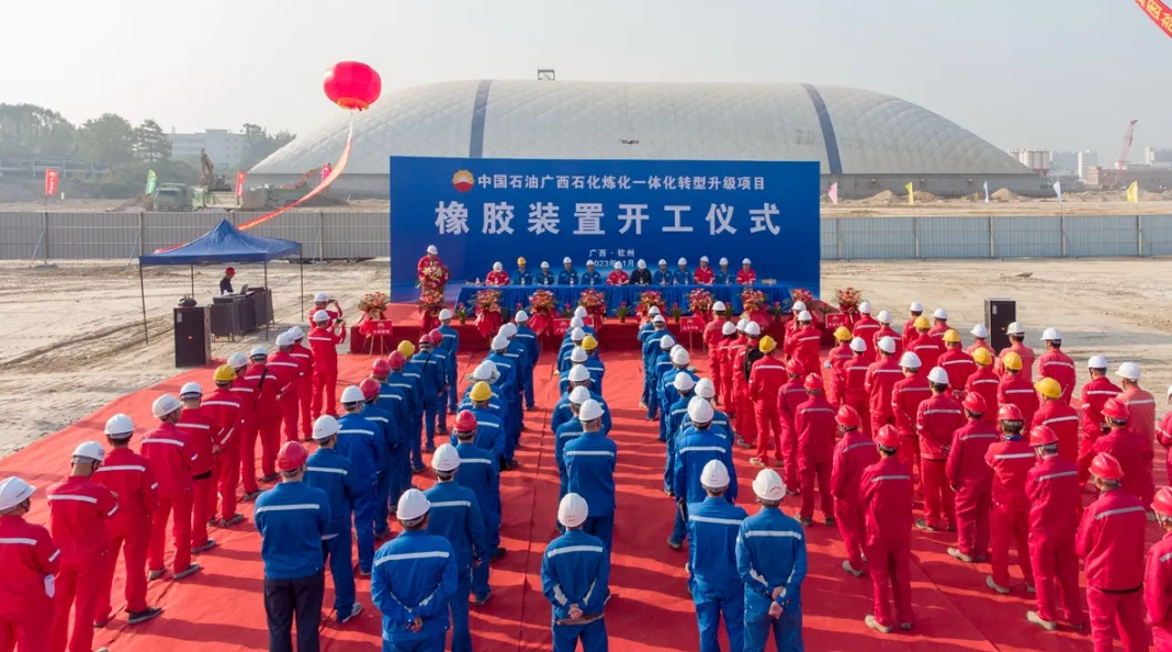 2023年11月28日上午,廣西石化煉化一體化轉型升級項目12萬噸/年溶聚丁苯橡膠(SSBR)裝置和8萬噸/年苯乙烯-丁二烯-苯乙烯熱塑性彈性體(SBS)裝置開工建設。