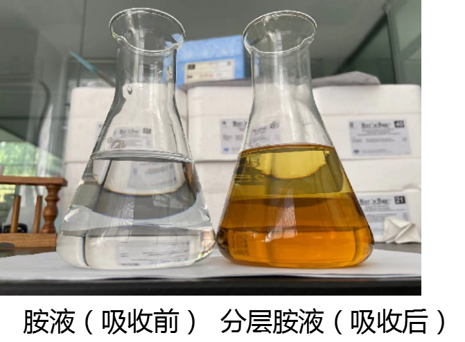 相比于傳統(tǒng)有機(jī)胺或醇胺溶劑,我公司的混合胺吸收劑及相變型吸收劑具備高吸收容量、高反應(yīng)速率、低再生熱耗、低溶劑損失和低腐蝕性等優(yōu)點(diǎn)。其中的相變吸收劑吸收完CO?之后能夠產(chǎn)生富相和貧相的分相,僅需將富相送去貧富液換熱器和解吸塔,貧相與再生后的貧液混合,經(jīng)冷卻后進(jìn)入吸收塔循環(huán)吸收CO?。只需加熱富相即可實(shí)現(xiàn)吸收劑再生,從而避免了傳統(tǒng)均相吸收劑再生過(guò)程中因?yàn)榧訜崴炙璐罅科療幔蟠蠼档驮偕鸁岷摹?/p>